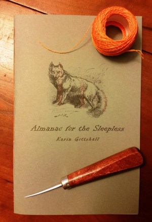 chapbook review: Almanac for the Sleepless: poems by Karin Gottshall (dancing girl press, 2012). Saddle-stapled chapbook, unpaginated (21 pages).